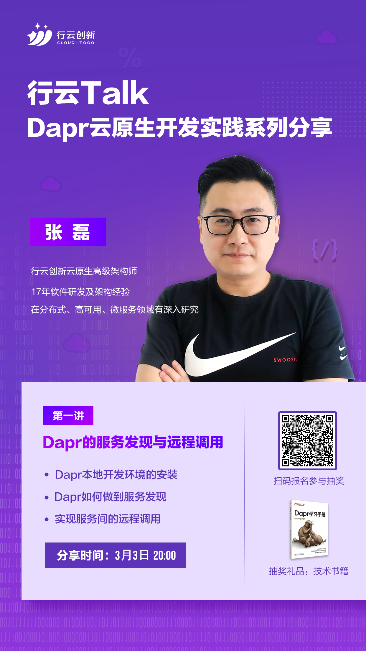 3月3日20:00,Dapr云原生开发实践系列第一期内容即将开讲,leyu.乐鱼创新云原生高级架构师张磊分享:Dapr的服务发现和远程调用,介绍Dapr本地开发环境的安装,Dapr如何做到服务发现以及实现服务间的远程调用。